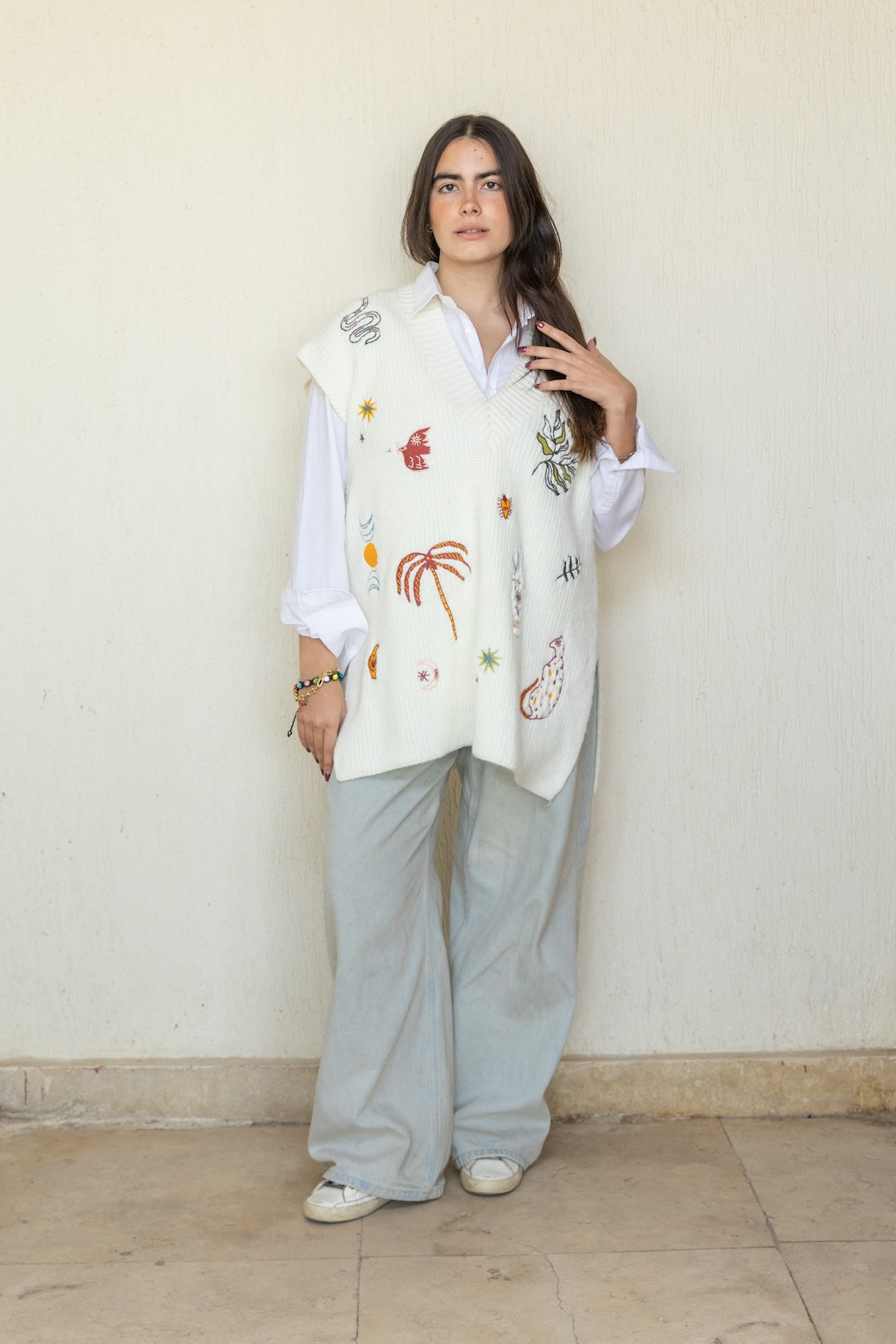 A vest with zero interest in being proper. Layer it with denim, plaid, or nothing at all — it flips from cute to cool without asking permission. Two colors, one statement: you run the show.